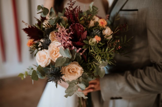 Бордові й помаранчеві квіти вибирають для передачі сили, натхнення, впевненості. Це добрий варіант для колег, партнерів, друзів, досягнень у бізнесі чи нових життєвих перемог. Яскравий каскад алстромерій, гербер, лілій заряджає драйвом та оптимізмом.